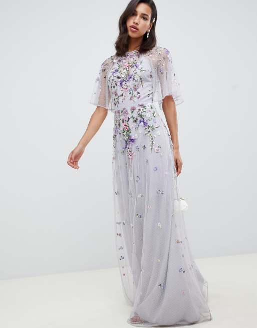 Product Name: Floral embroidered dobby mesh flutter sleeve maxi dress clearance