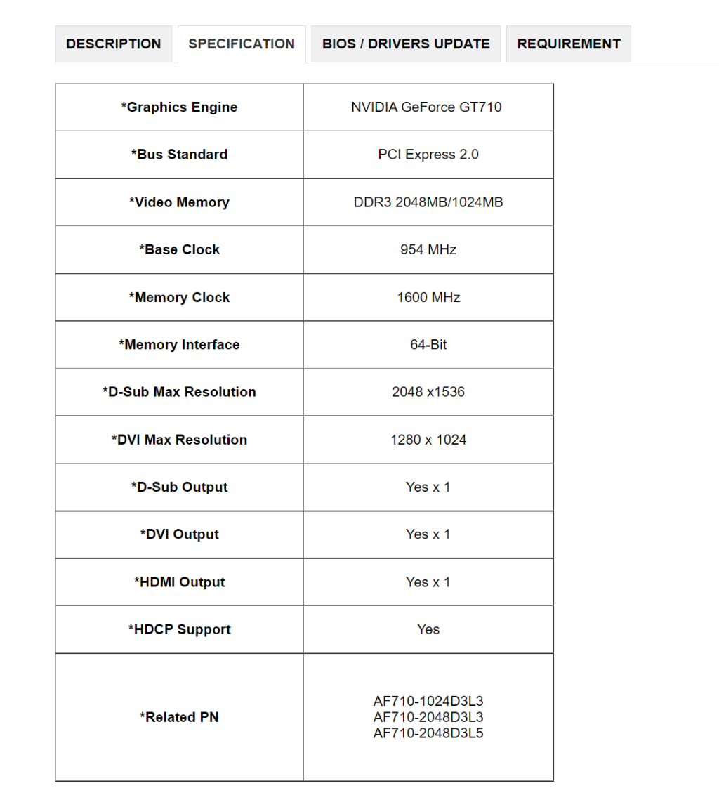 Product Name: Geforce gt 710 spec clearance
