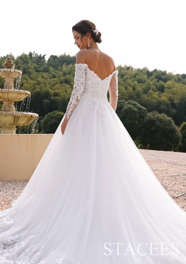 Product Name: Off the shoulder lace sleeve wedding dress clearance