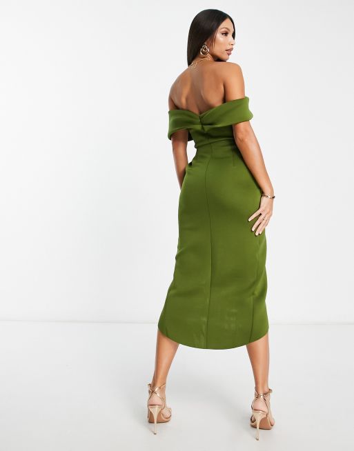 Product Name: Olive green off the shoulder dress clearance