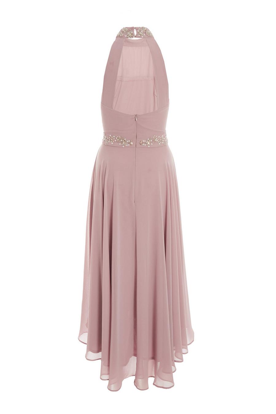 Product Name: Pink chiffon high neck embellished maxi dress clearance