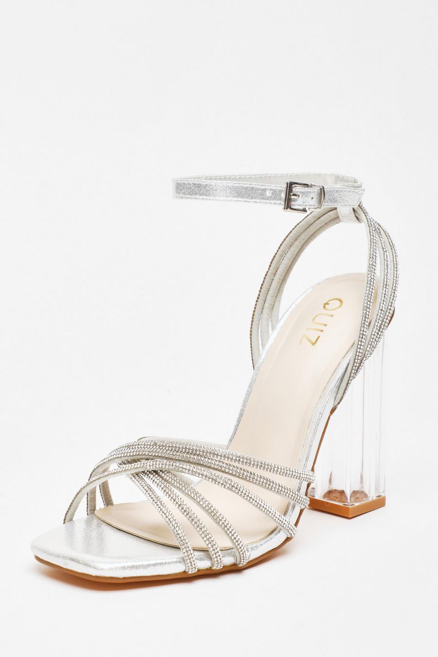 Product Name: Quiz silver diamante heel sandals clearance