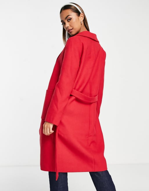 Product Name: Red belted wool coat clearance