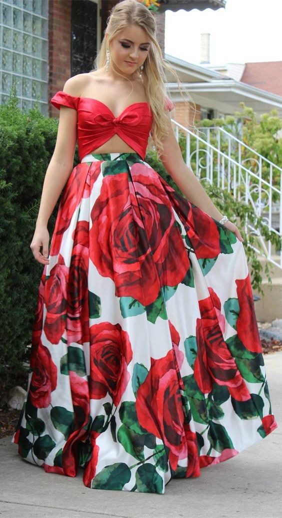 Product Name: Rose print prom dress clearance