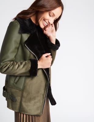 Product Name: Faux leather shearling jacket clearance