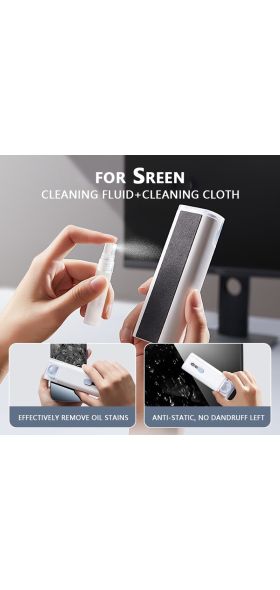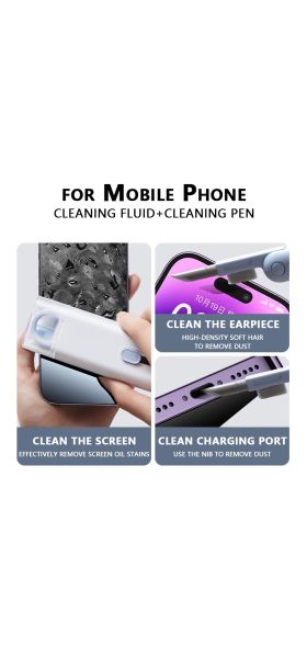 【7 in 1 Multifunctional Cleaner Kit】 The electronic cleaning kit includes a cleaning pen for Airpods with silicone nip, mini brush and flocking sponge brush; high-density soft brush, cleaning spray bottle(empty), fiber fleece swipe and keycap buckle. The kits can clean headphones, keyboards, PC monitors, phones, cameras etc.