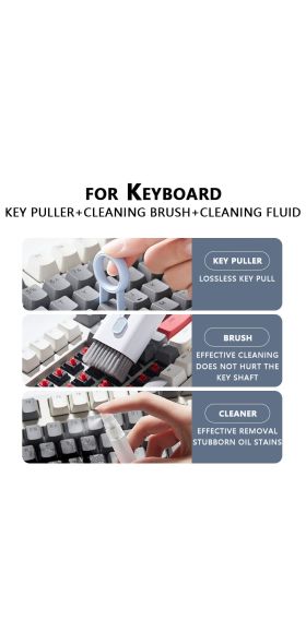 【High Density Soft Brush & Keycap Buckle 】 High density brush has dense and moderately soft bristles, it's great for cleaning dust in various keyboards and monitor crevices. The keycap buckle allows for effortless removal of the keys for deeper cleaning(note: the keycap buckle only fits mechanical keyboards).