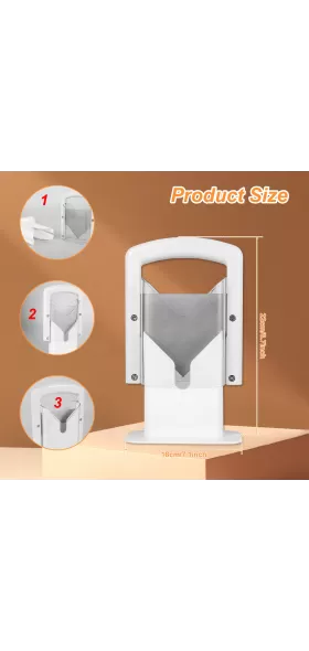 [Easy to Clean] This bagel cutter slicer features a clever design to capture all crumbs. Easy to use and leaves the countertop clean and tidy. And the bagel cutter slicer is easy to clean and care with rinse water.