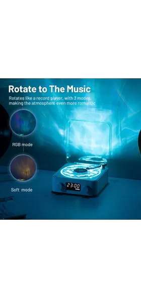 Beautiful Breathing Light: The transparent water ripple turntable can rotate with the music, creating a gorgeous atmosphere in the room. The screen-off design is not dazzling at night, and the screen can be woken up by tapping the body or vibrating the desktop.