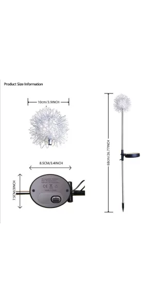 2 Solar Dandelion Garden Lights - LED Outdoor Lawn Lamps - Landscape Decor for Patio Yard